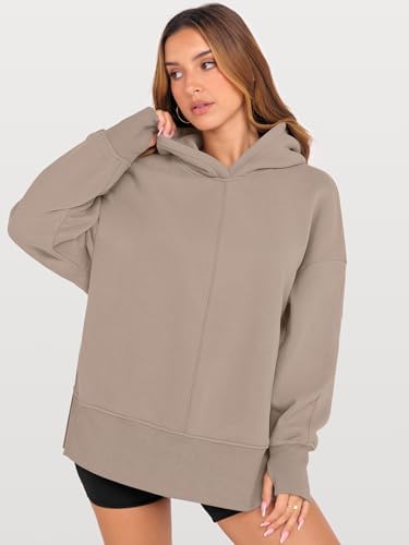 ANRABESS Women’s Oversized Sweatshirts Crewneck Long Sleeve Tunic Pullover Shirts Side Zipper Hoodies 2025 Fall Clothes