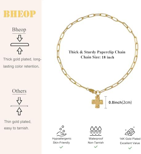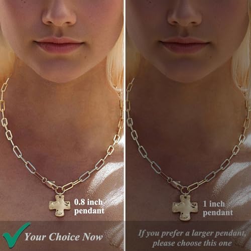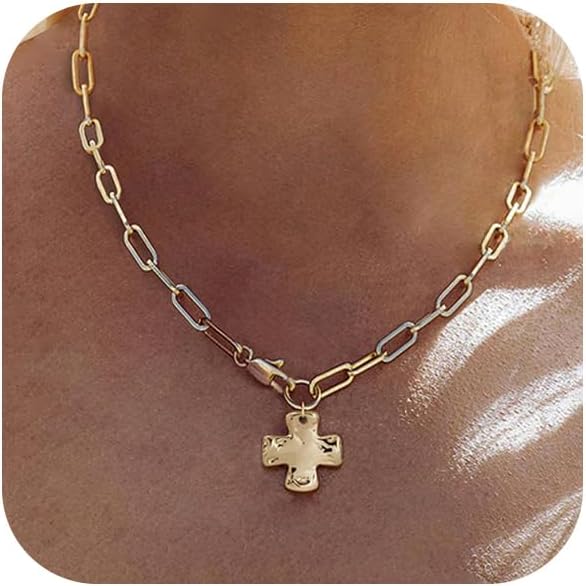 • 【Fashion Chunky Necklace】This chunky necklace features a thick paper clip chain paired with a bold hammered cross pendant, blending modern edge with a touch of vintage charm. The textured cross symbolizes strength, faith, hope, and protection, making it not just an accessory but a meaningful statement for everyday wear. Perfect for layering or wearing solo, it adds instant character and significance to any look.