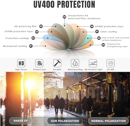 • Confidence in Protection, Style in Every Detail: Eiuizah Polarized Sunglasses with UV protection offer more than just a stylish look—they promise durable protection. With sleek design and tough lenses, your eyes stay protected while you stay in style.
